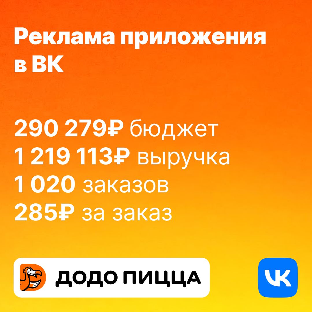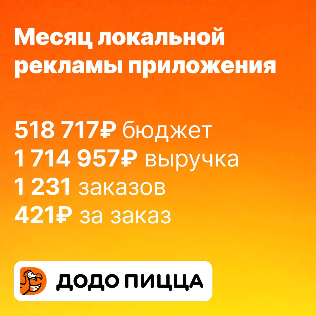 Реклама приложения Додо Пиццы. 320% ROMI в первый месяц