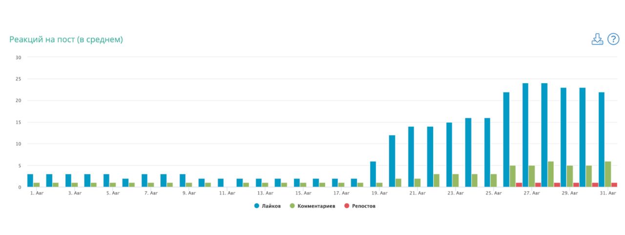 Что важно: При подсчете статистики исключали все посты, связанные с конкурсами и розыгрышами. Статистика считалась только относительно обычных постов: развлекающие как основные + информационные и товарные. Сравнивали показатели за июль с показателями за август.